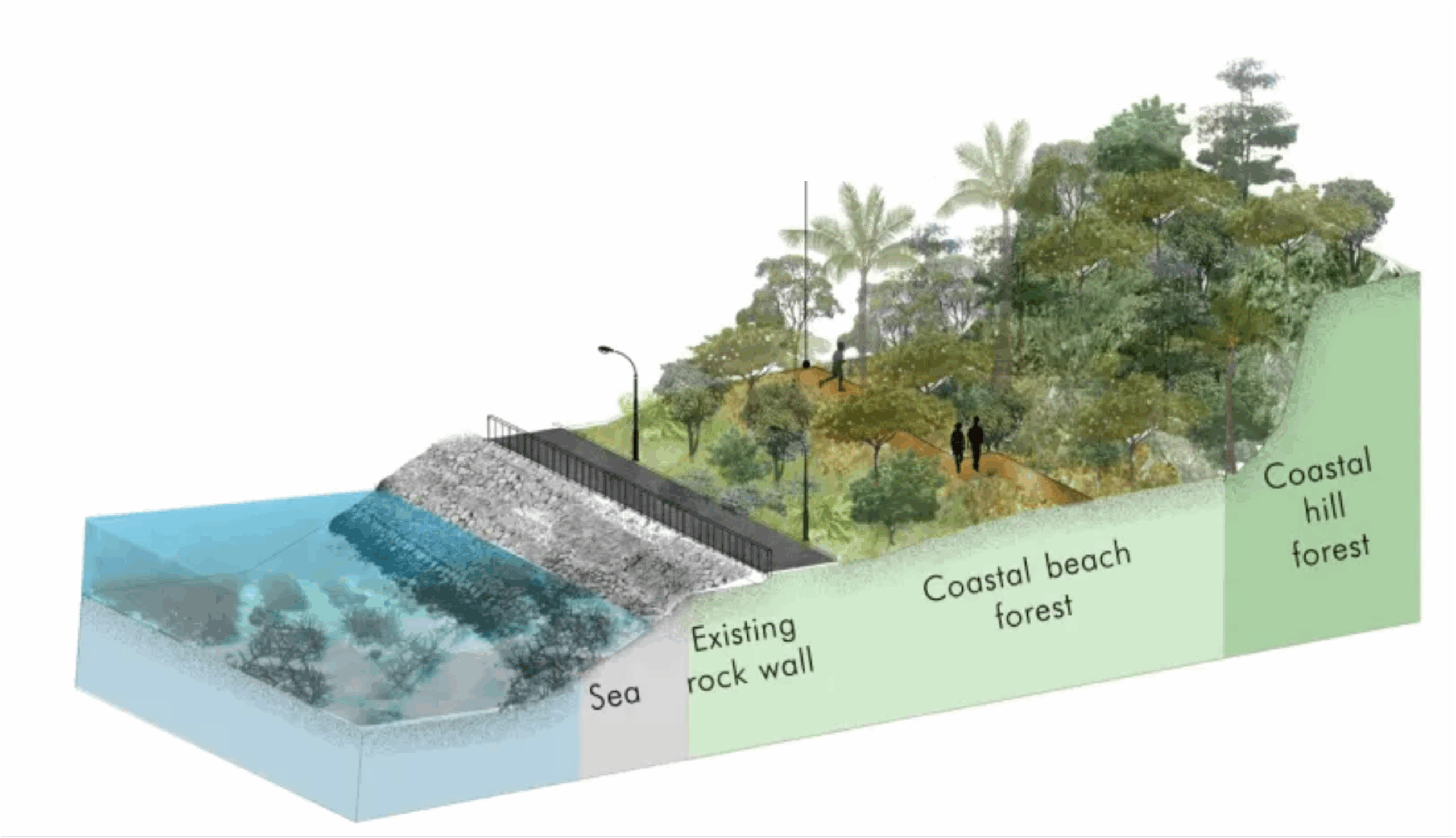 On sandy beaches, reforestation focuses on stabilizing dunes and loose sands using hardy species like sea oats, beach grass, and native shrubs. These plants anchor the soil, reduce erosion, and form windbreaks, creating a microhabitat that fosters further vegetation growth and protects inland areas from storm surges and salt spray.