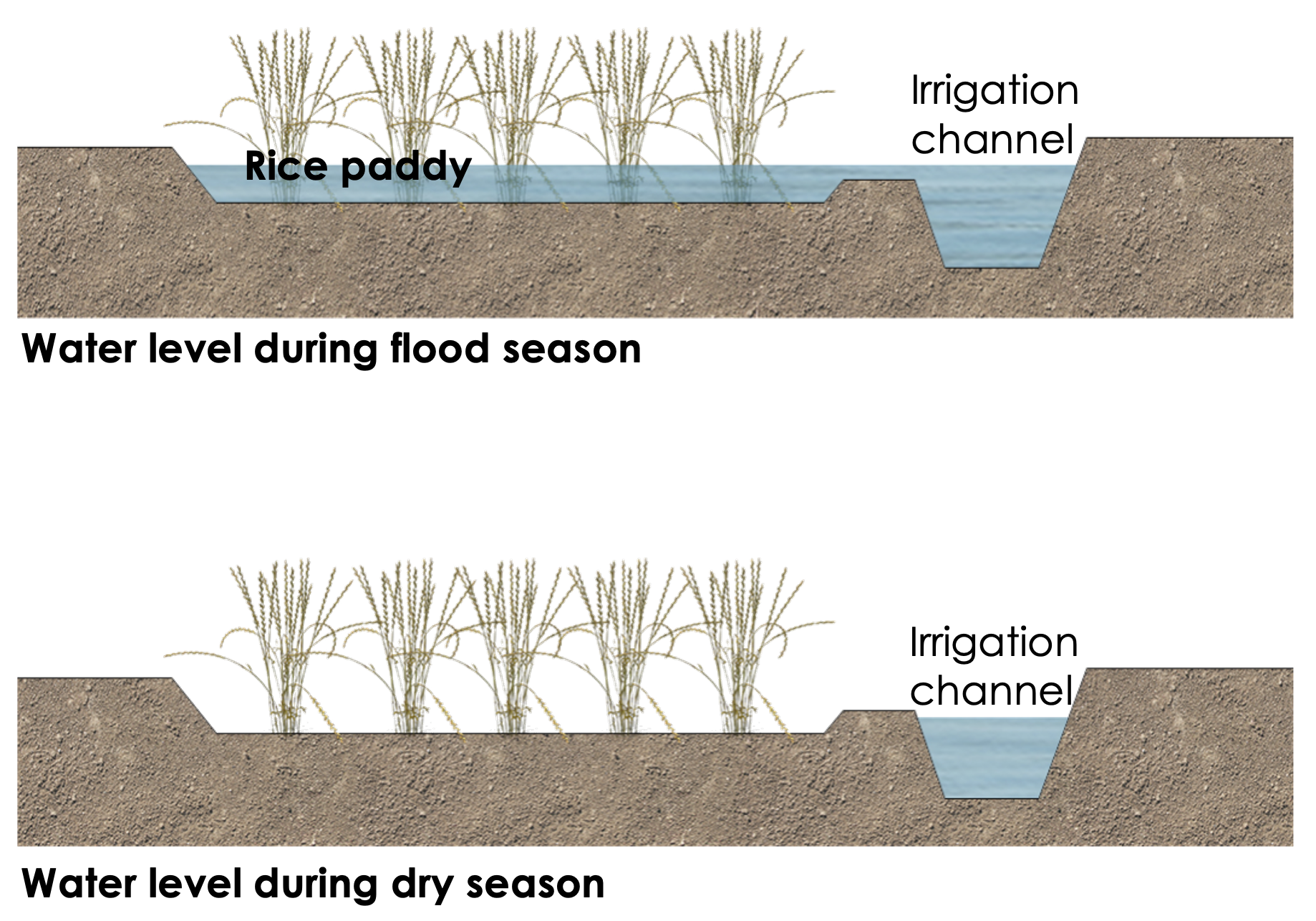 In regions like the Mekong River Delta, where rice cultivation is crucial, this approach involves maintaining higher water levels during the rice growing season, reducing the need for frequent drainage.