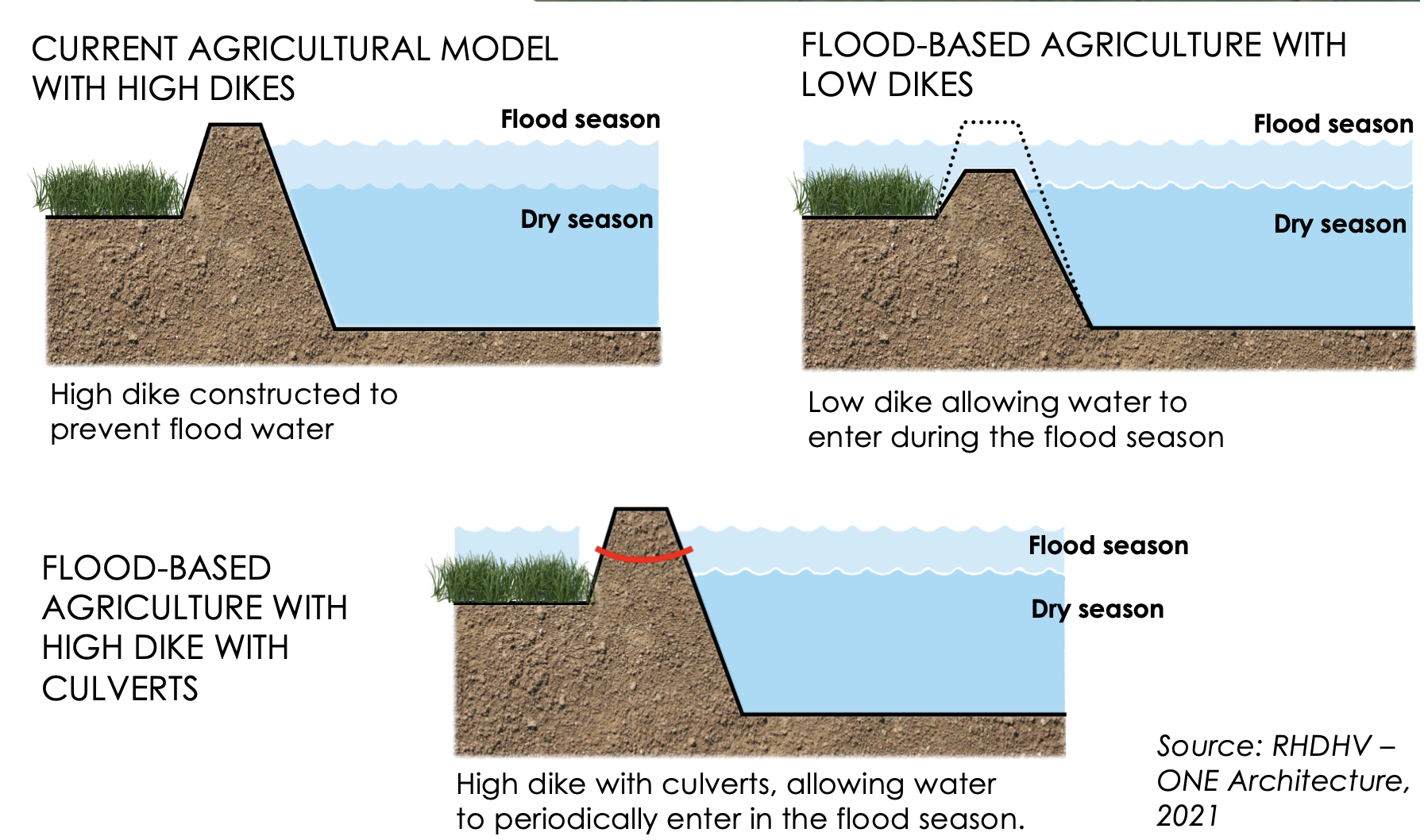 Flood-based agriculture is a nature-based solution (NbS) that leverages seasonal floods to enhance agricultural productivity, improve food security, and build climate resilience in flood-prone areas of Southeast Asia, such as the Mekong River Delta and Tonle Sap Biosphere.