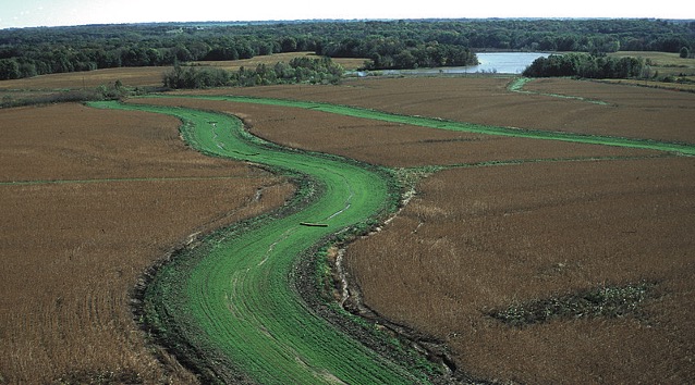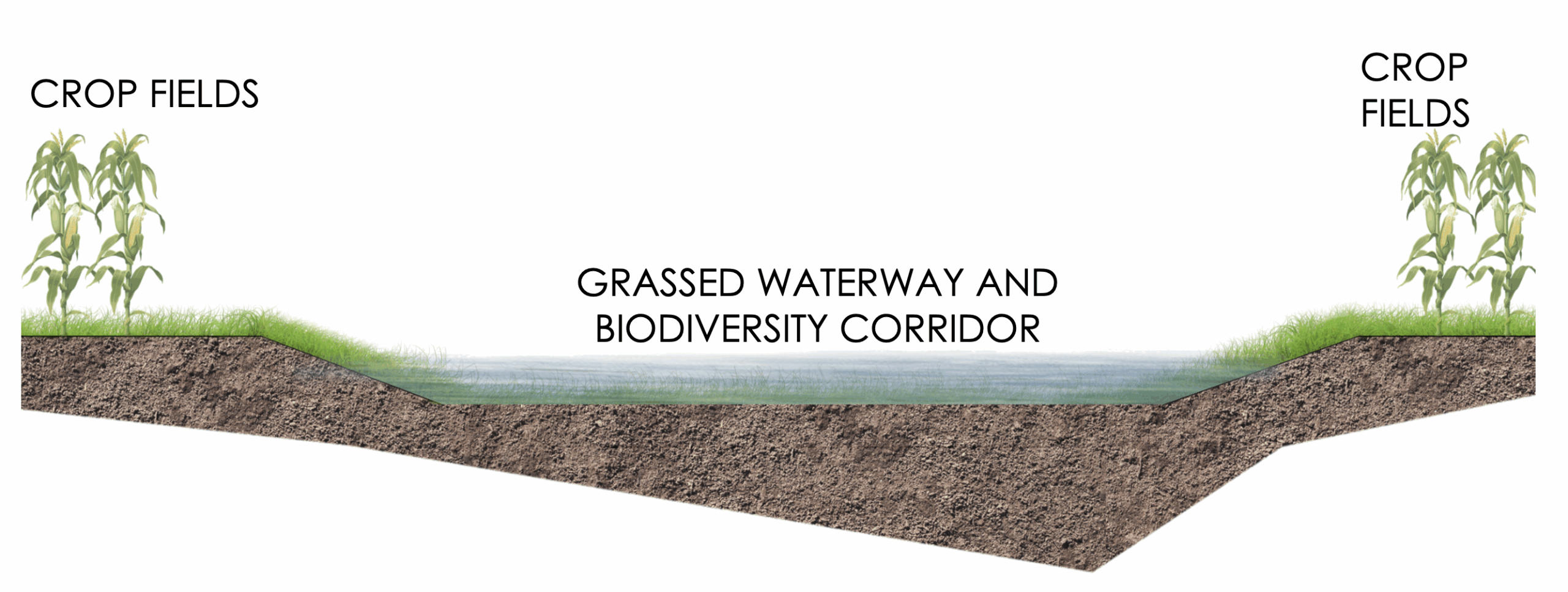Grassed waterways are gently sloped, vegetated channels are designed to direct surface water runoff, reducing soil erosion, sedimentation, and nutrient loss while fostering water infiltration into the soil.