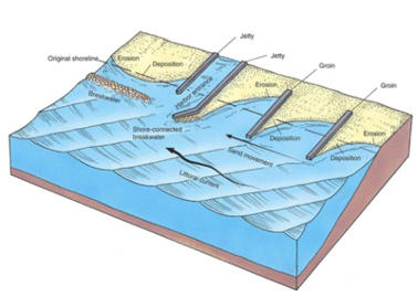 Sand Accumulation Imbalance: Groynes can cause uneven sand buildup, potentially leading to erosion in adjacent areas, requiring precise design and placement to avoid negative impacts on nearby shorelines.